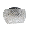 Jaren 60 plafondlamp, gemodelleerd transparant glazen kap met metalen houder. Vierkant model. Ook als wandlamp te gebruiken. Gaaf. Geschikt voor led verlichting.