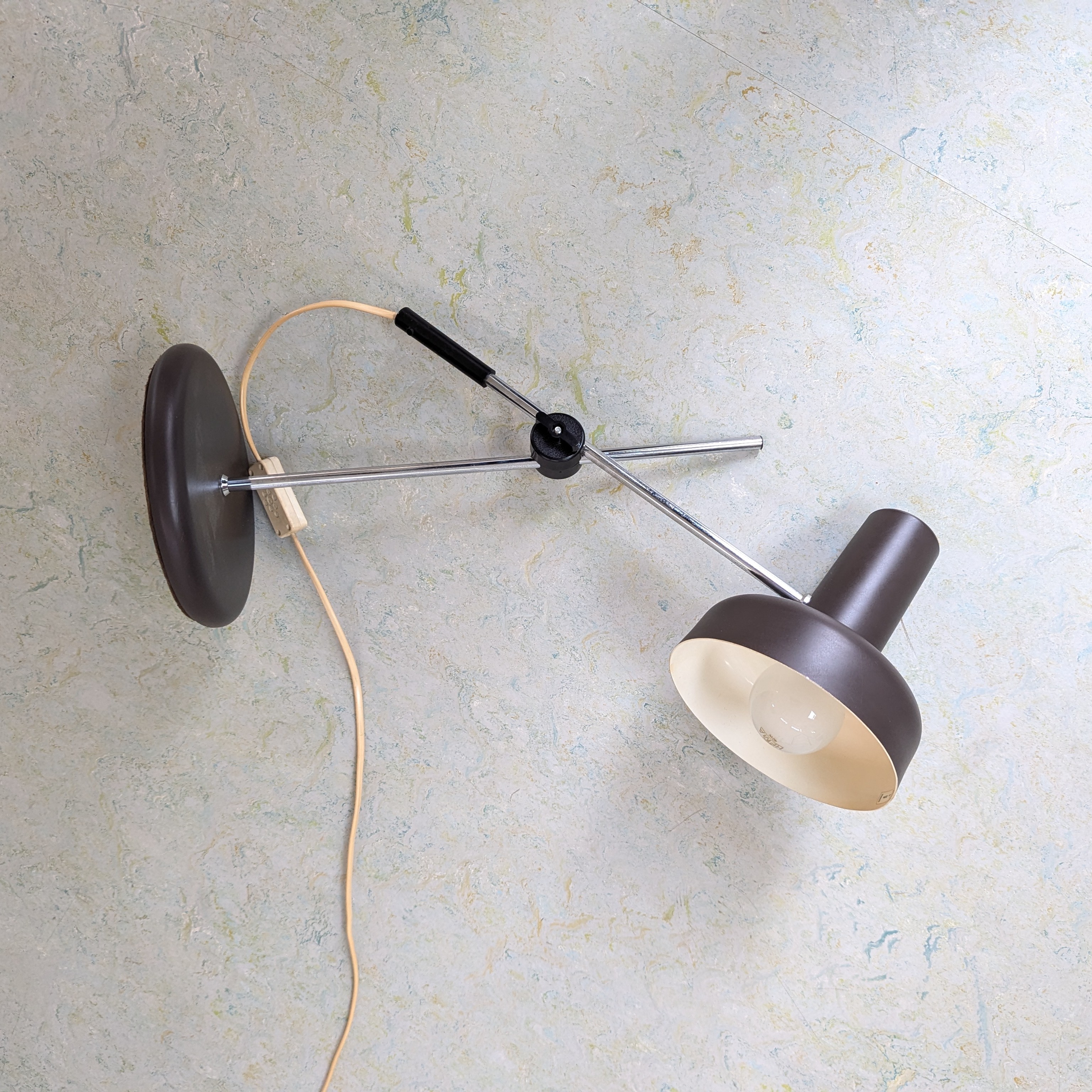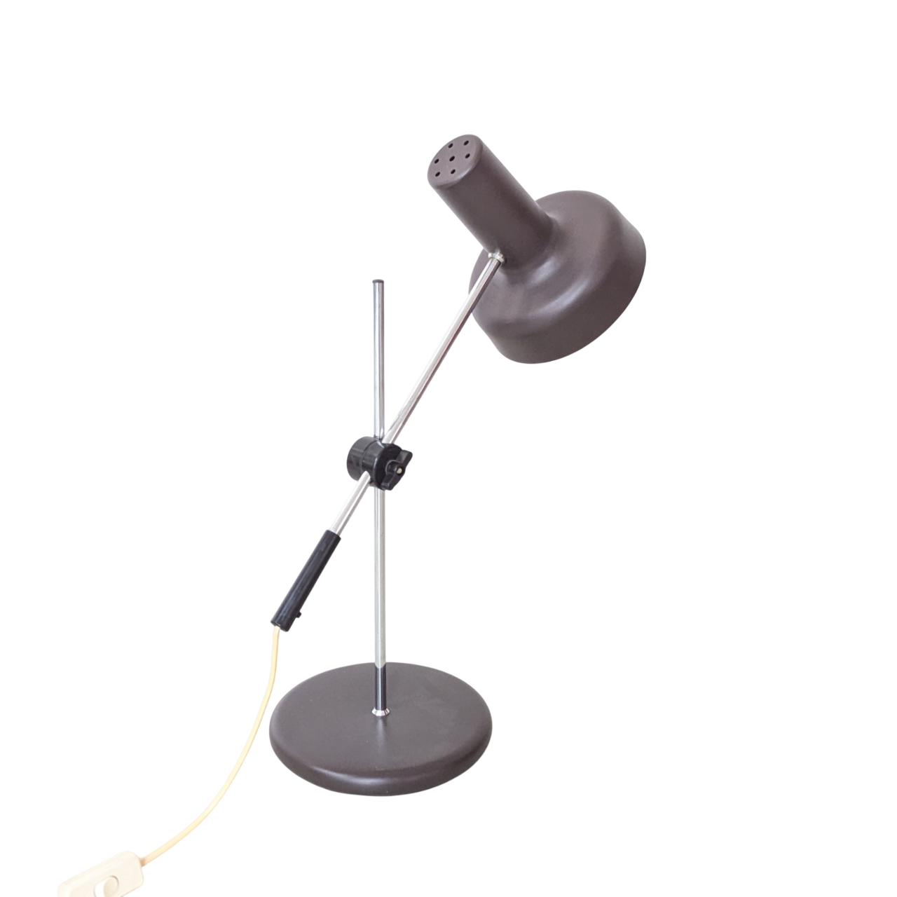 Gura Leuchten, Duitsland, originele bureaulamp, midcentury, jaren ’70 design. In een mooie vintage staat, geschikt voor led verlichting. Kleur donker taupe. Snoer schakelaar.