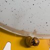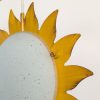 Jaren 80/90 hanglamp in de vorm van een zon, aan beide zijde een gematteerde glazen kap met wat pikkeltjes. Wat rand schilfertjes, zie foto. Grappig model.