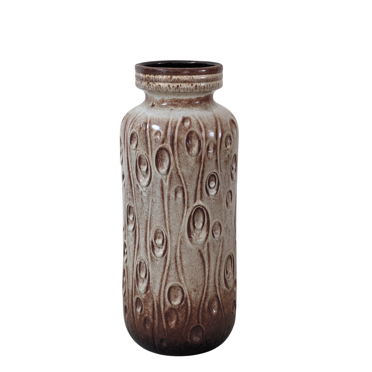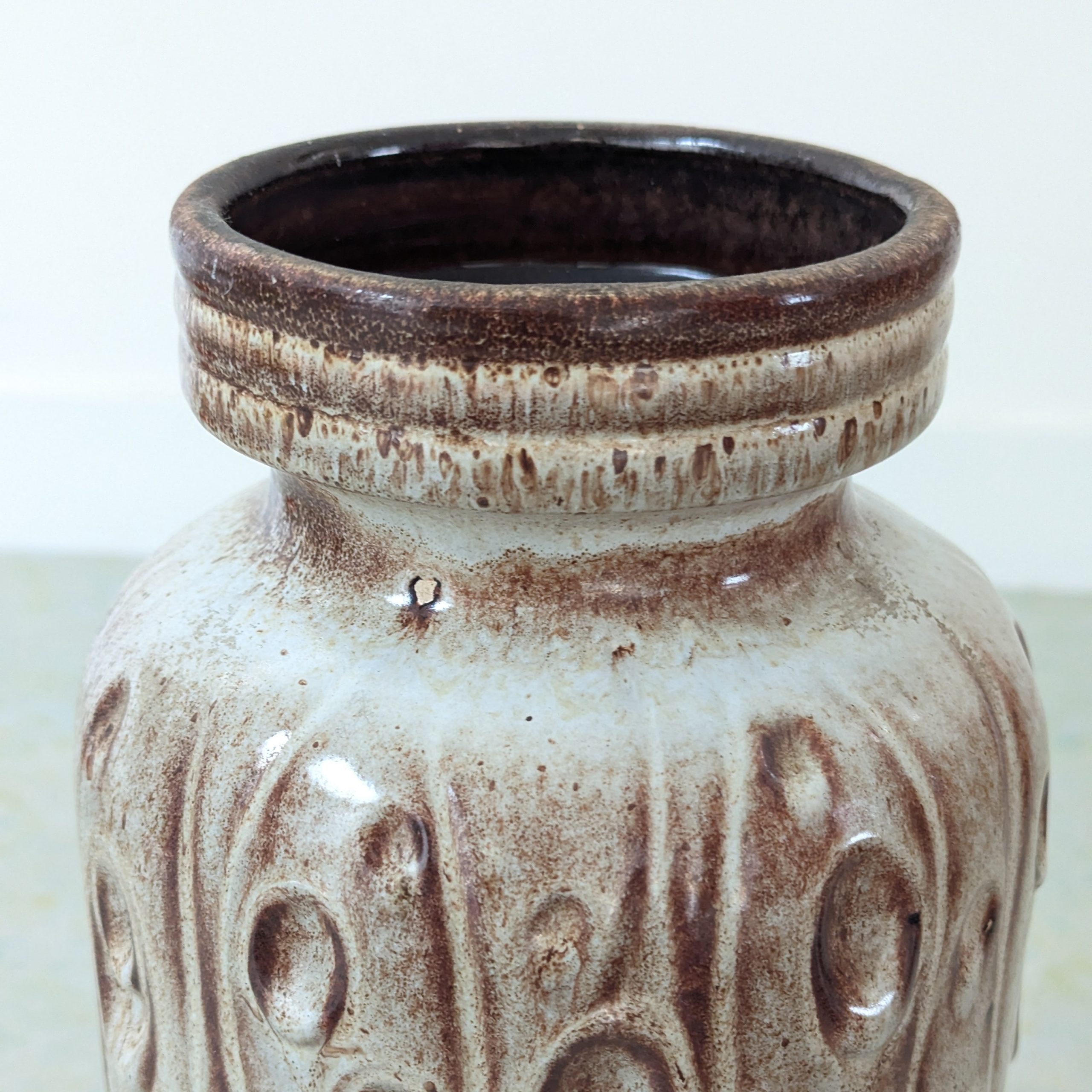 Grote vintage Scheurich vaas, met reliëf, diverse ingetogen tinten, geglazuurd keramiek, jaren 70, West Germany. Gaaf.
