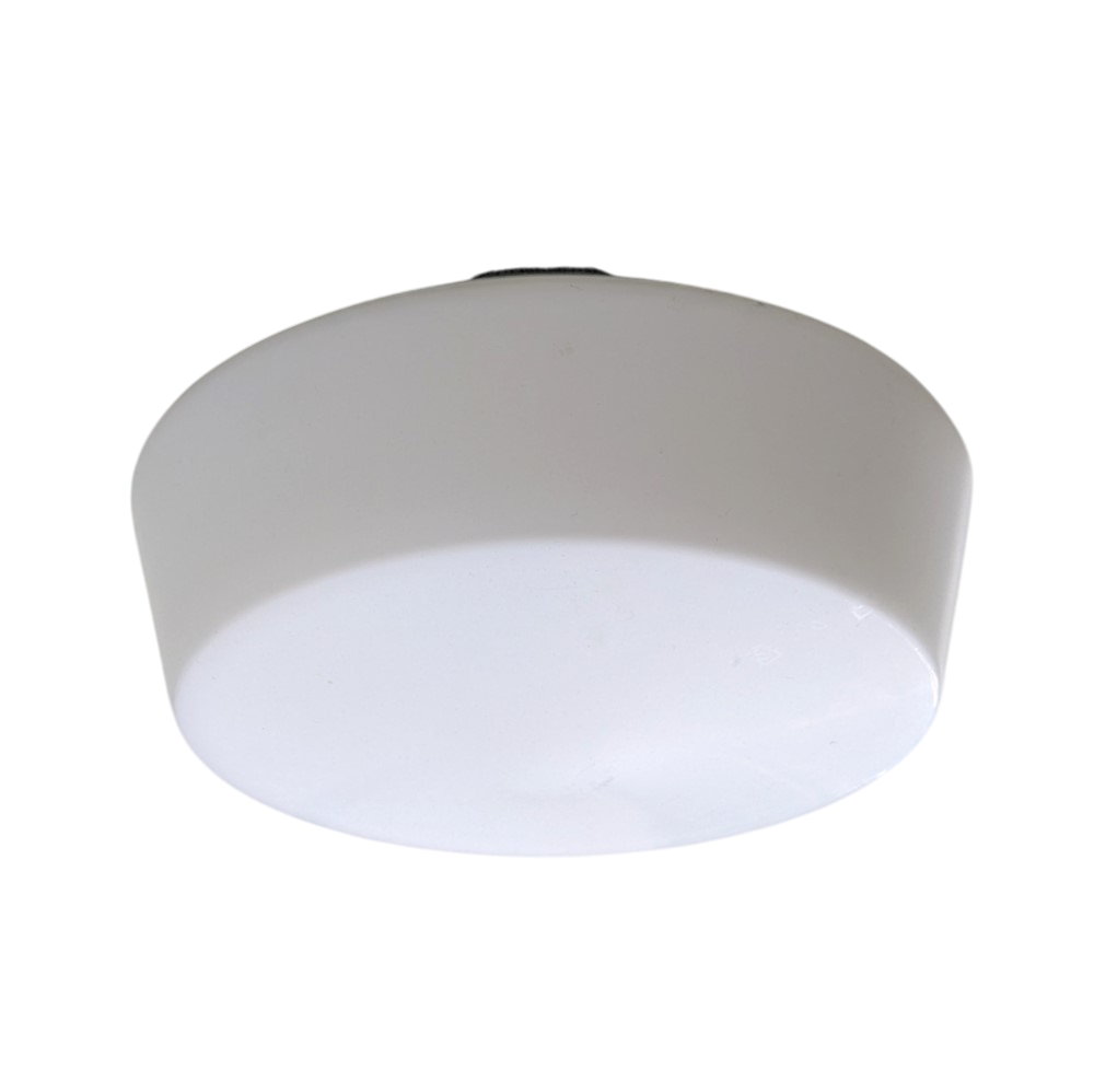 Plafondlamp, jaren 50/60, gemerkt RZB, gematteerde opaal glazen lampenkap. Mooi strak model. Het is een klein model. Is ook als wandlamp te gebruiken.