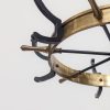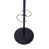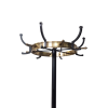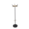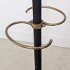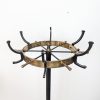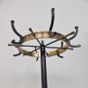 Jaren 60/70 staande kapstok met parapluhouder, zwart metaal, gietijzer en messing ring en onderdelen. Top is draaibaar, 6 dubbele haken en 6 ophang pennen. Apart model, weinig sporen van leeftijd en of gebruik.