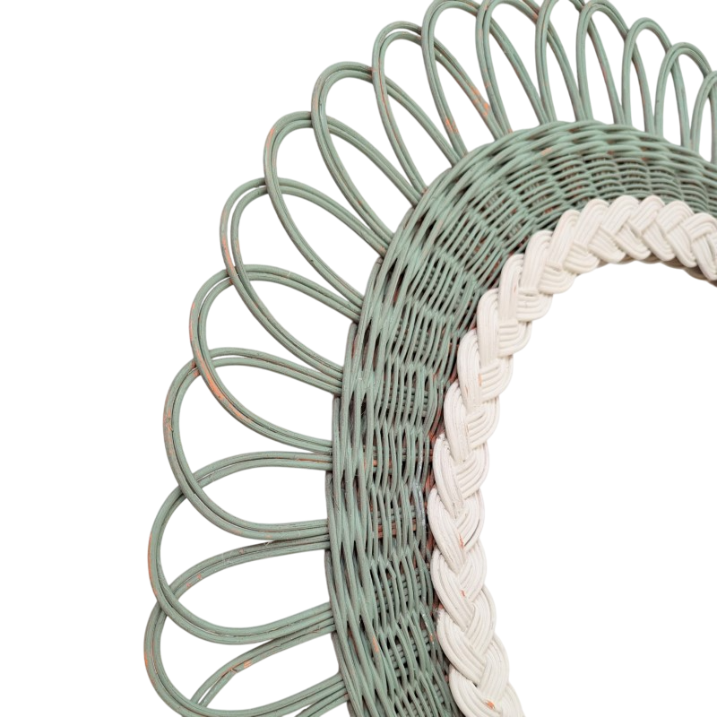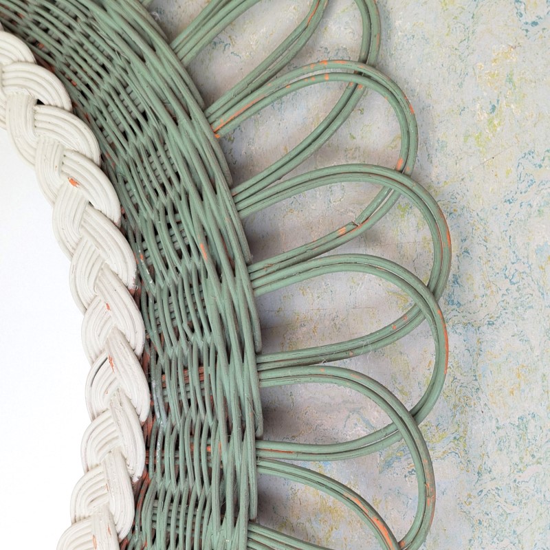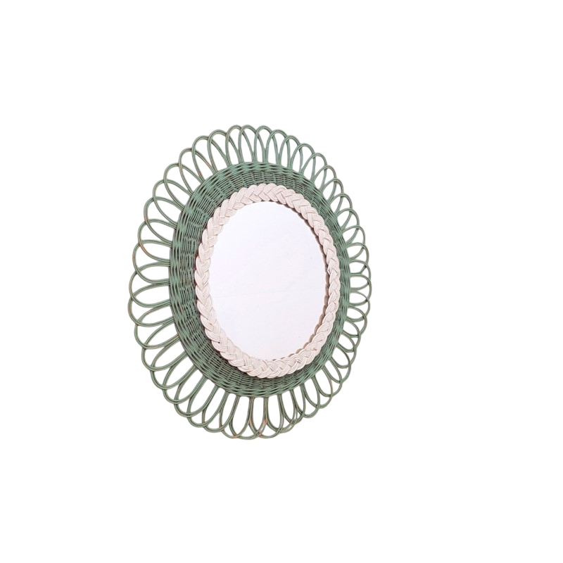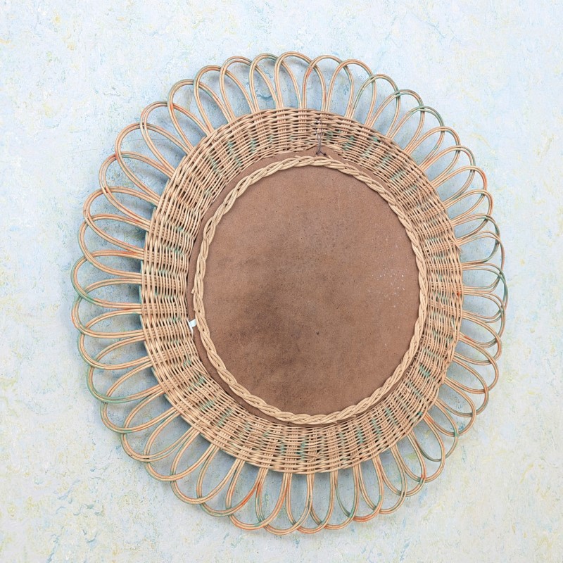 Vintage jaren 60/70 wandspiegel, rotan/riet en spiegelglas in goede staat, weinig ouderdom sporen.