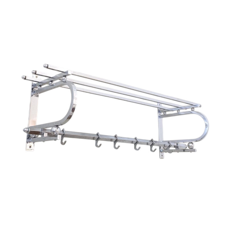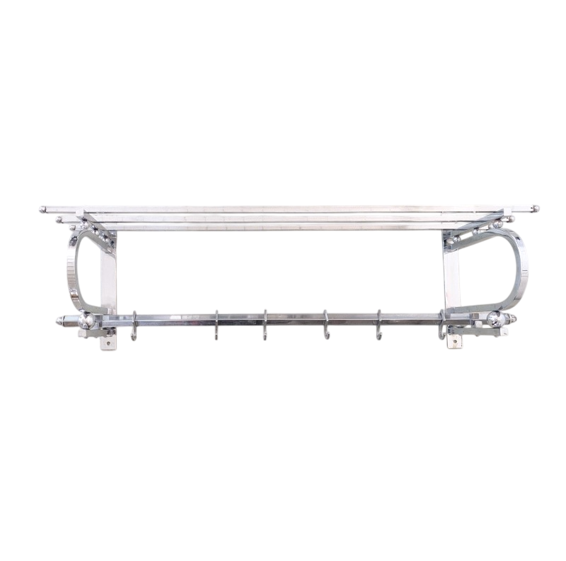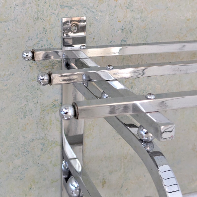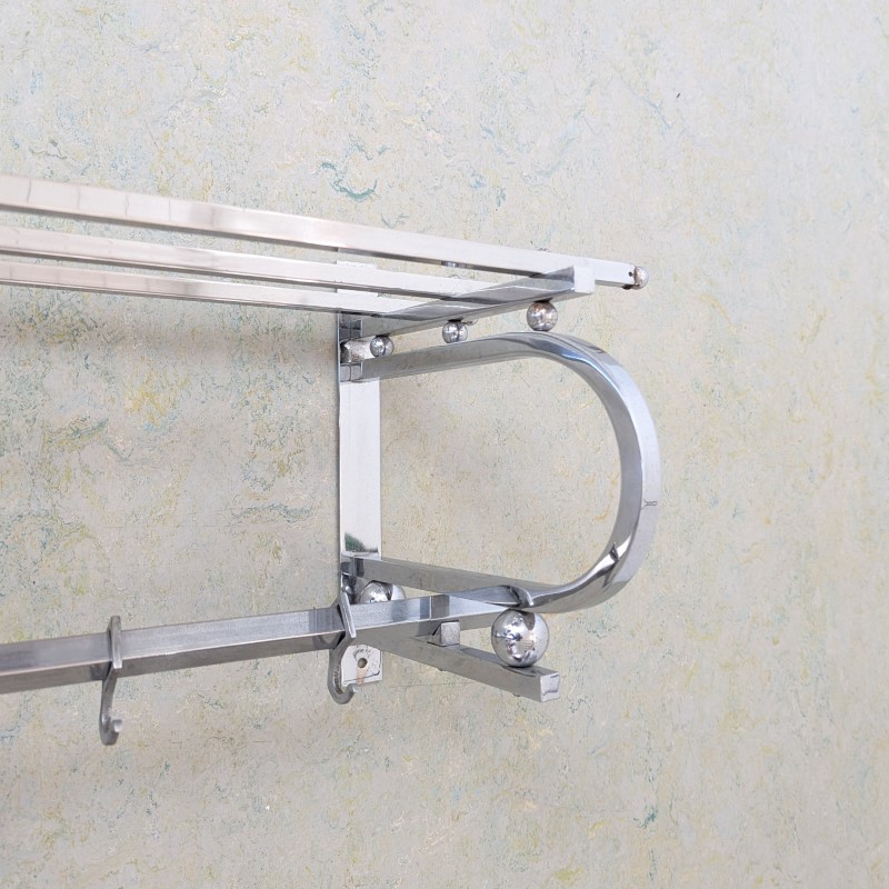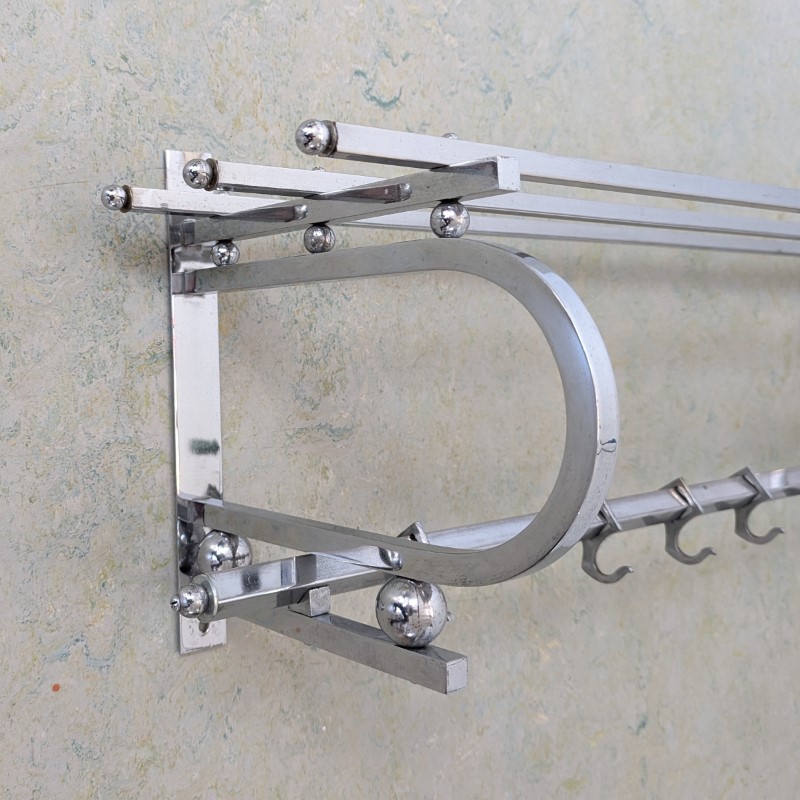 Jaren 30 Art Deco wand kapstok, verchroomd en met 6 schuifbare haken. In een goede staat. Een mooi basic en strak model.VERKOCHT