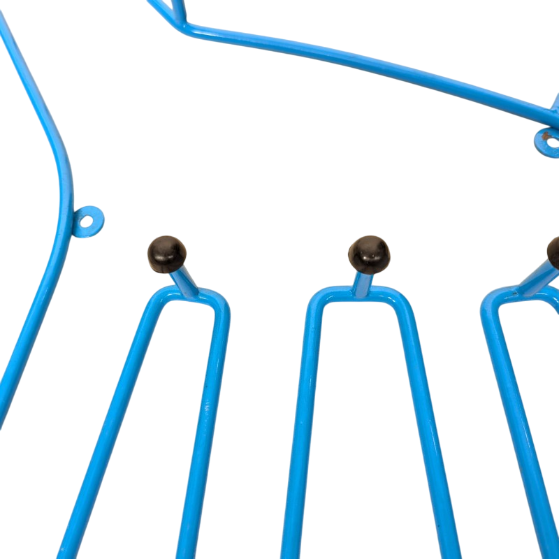IKEA design. Grote wandkapstok in blauw gelakt staal, in de vorm van een giraf, heeft 12 haken. In originele kleuren en in goede staat.