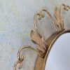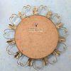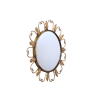 Zonnespiegel jaren 60 product van De Knudt, België. Verguld metalen rand en een bolle spiegel. Enkele oxidatie plekjes, zie de foto’s.