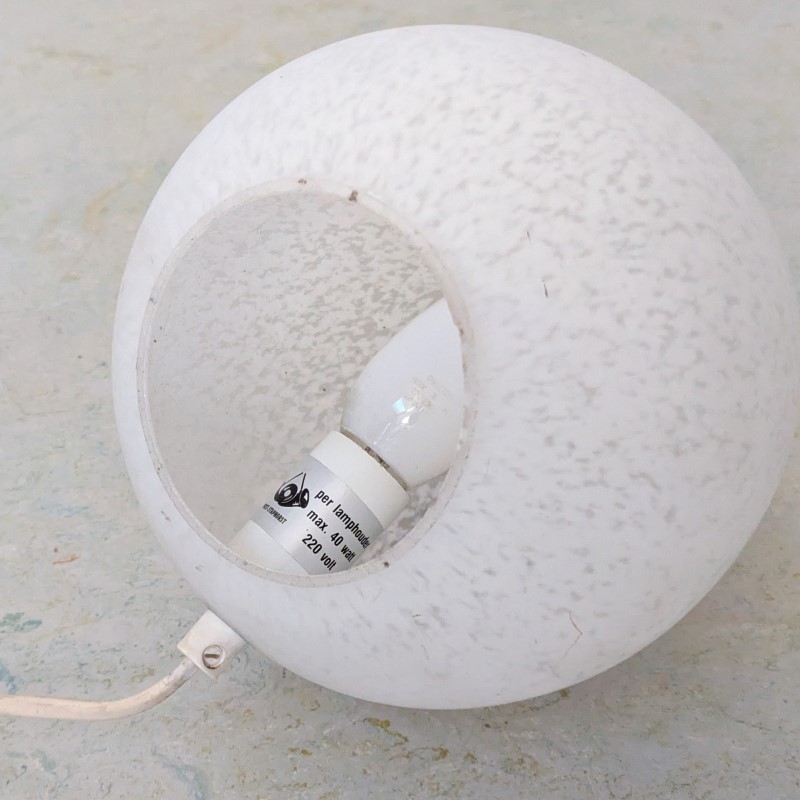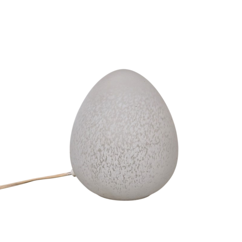 Egg lamp, wordt toegeschreven aan Domec Luminaires, Frankrijk. Jaren 70. Gevlekt wit / transparant glas. In goede staat.