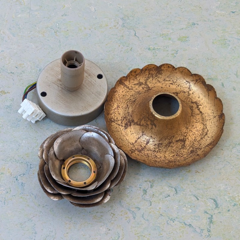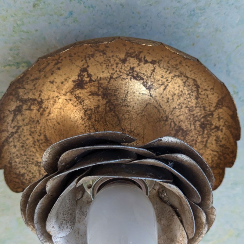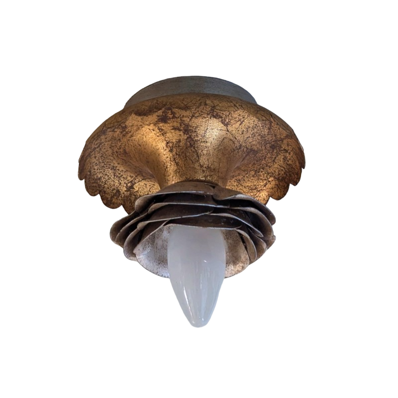 Plafond of wandlamp van Studio Banci Firenze jaren 60 tot 70. Organische vormen in Hollywood Regency stijl. Geheel van metaal en verguld. Kan zowel aan het plafond als aan de muur worden bevestigd. In goede staat.
