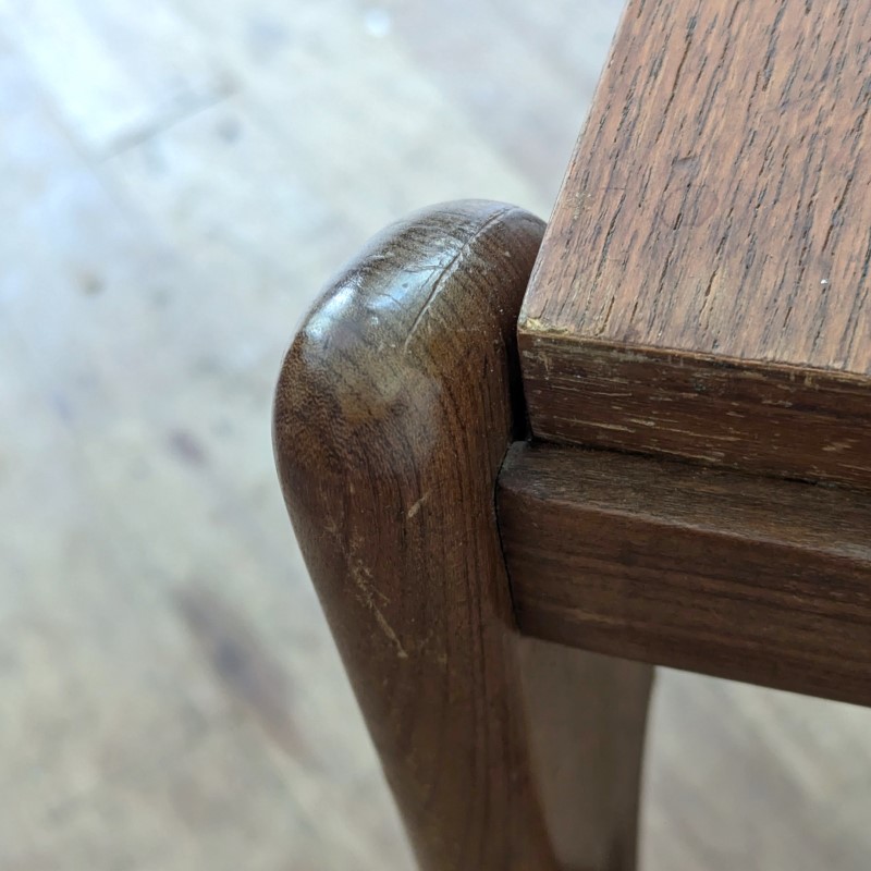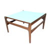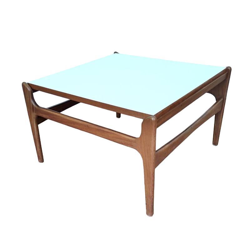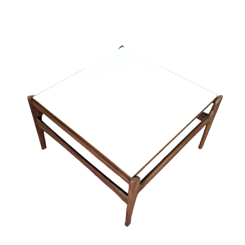 Vintage salontafel, Deens design. Massief houten structuur met een elegant gevormd houten frame, blad is omkeerbaar, top van wit formica of gefineerd teak. In een goede vintage staat, weinig gebruikssporen