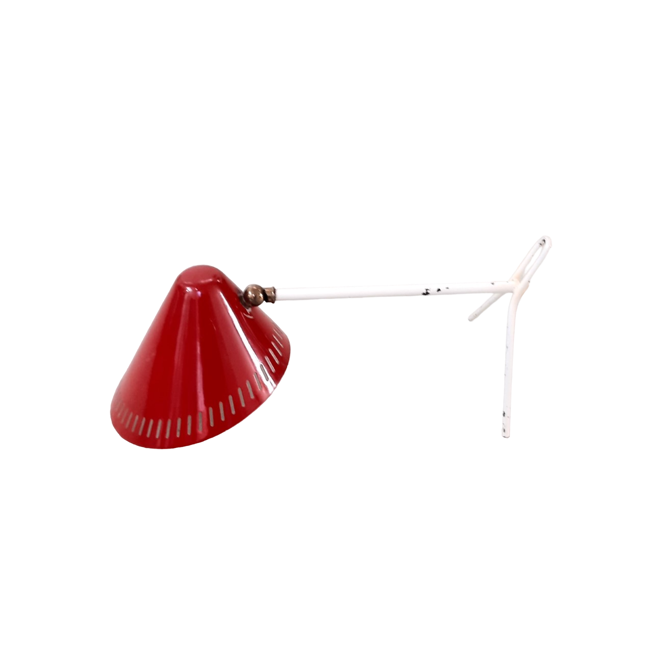 Jaren 50 tafellampje, ook te gebruiken als wandlamp. In originele kleuren en staat, normale slijt. Snoerlengte ruim 150 cm met originele schakelaar en stekker.