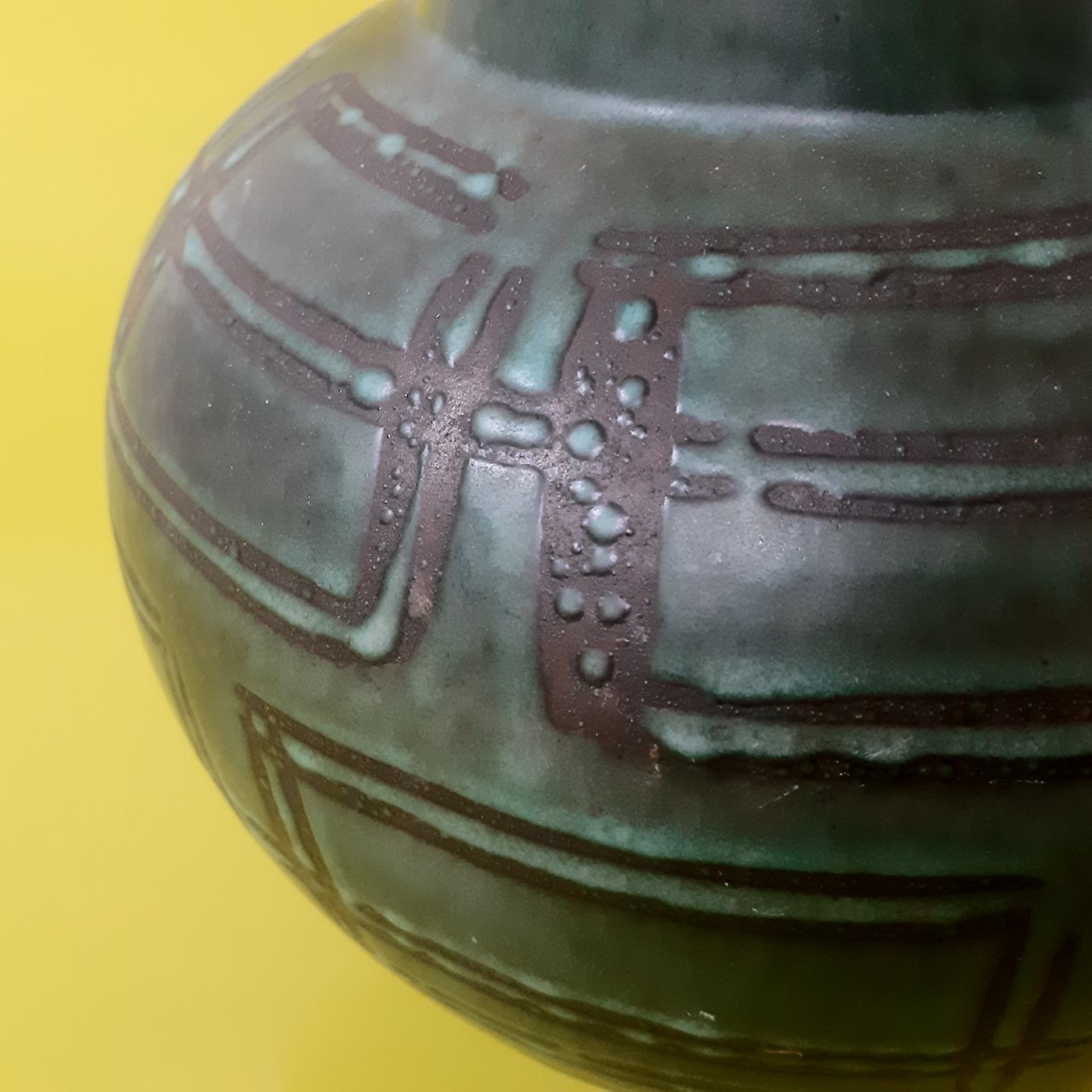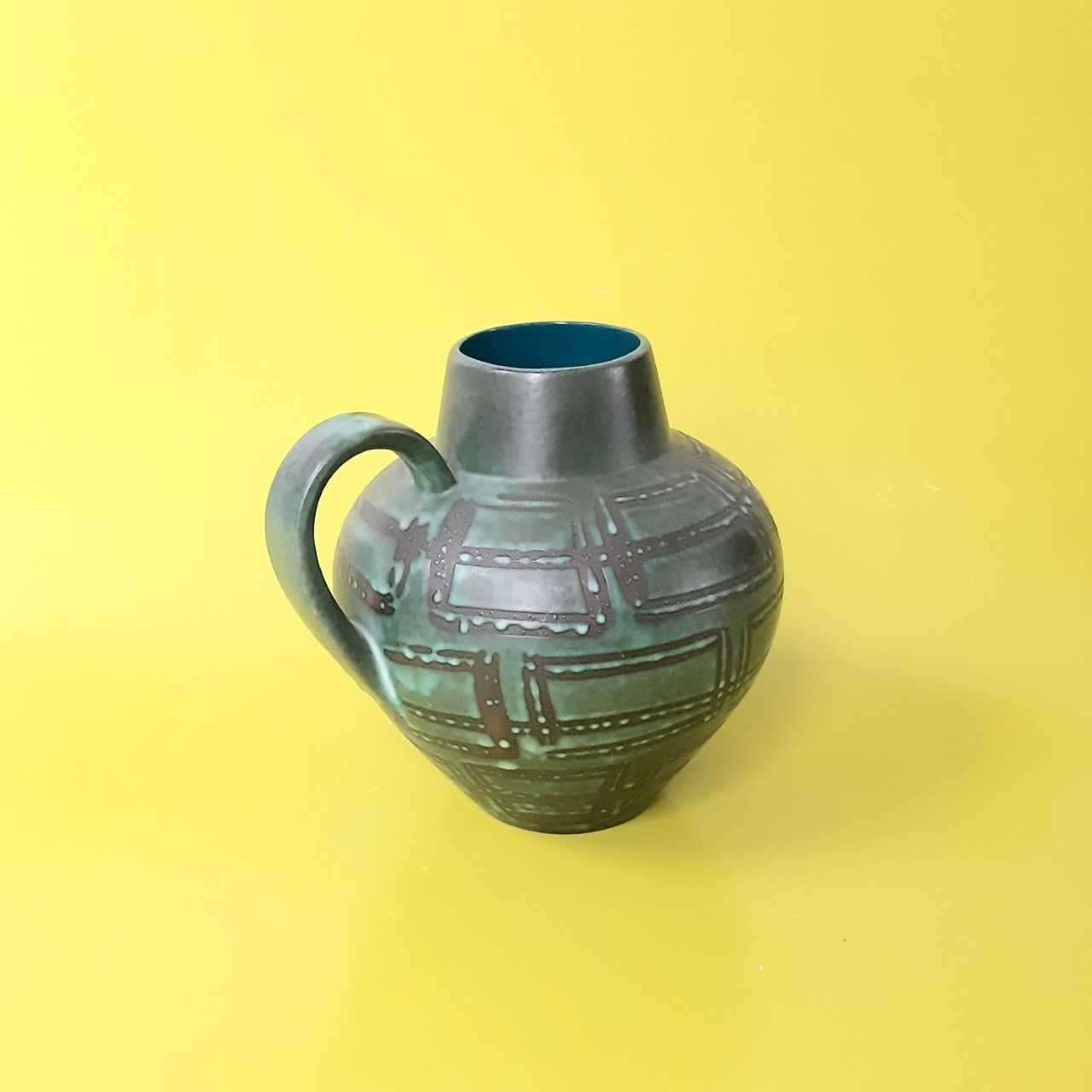 Jaren 60 vaas, vormgeving in de geest van het brutalisme. Gaaf en geproduceerd in West Germany. Mooie kleuren met relief.