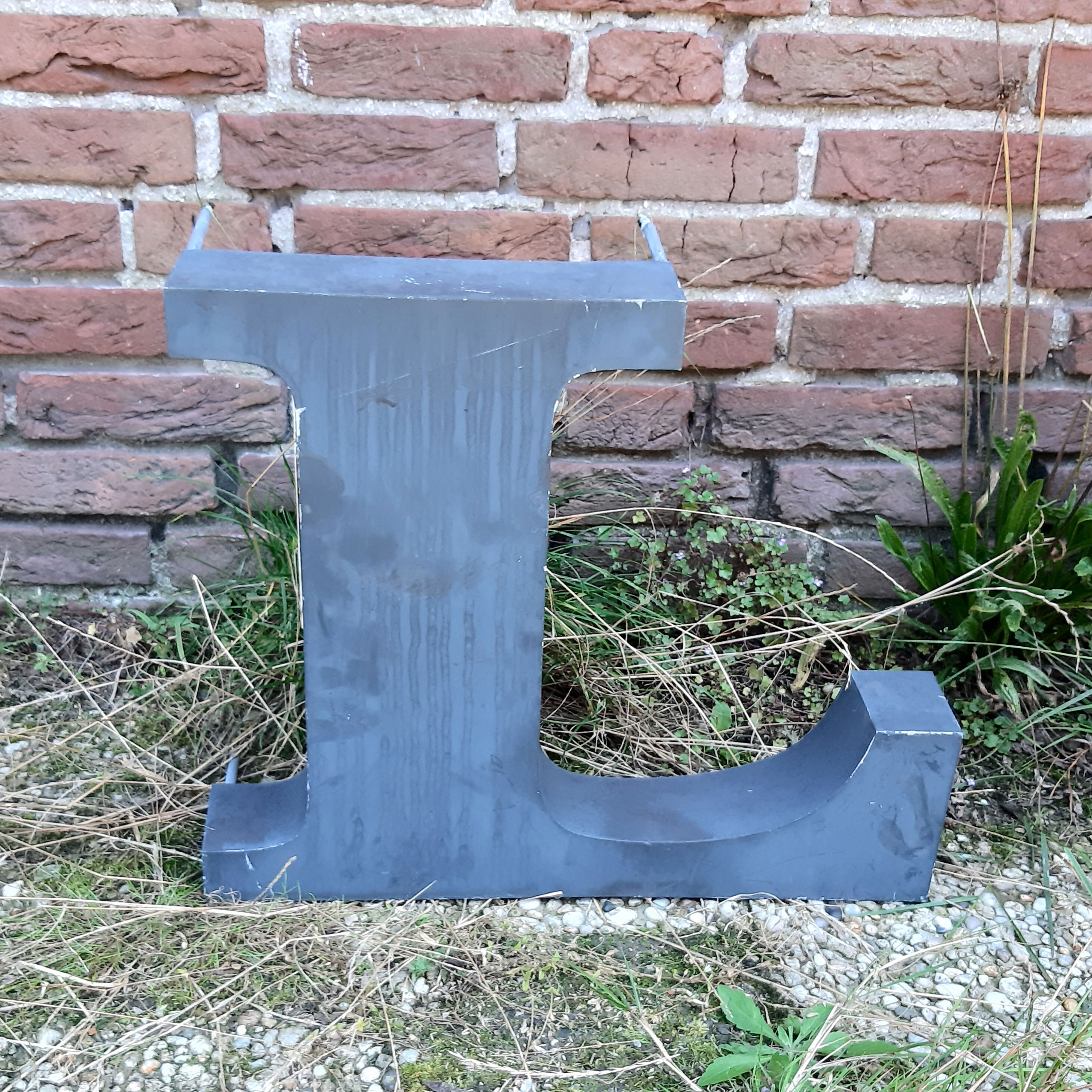 Aluminium letter L, handwerk. De uitstekende buisjes aan de achterkant kunnen er vanaf gezaagd worden