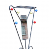 Vintage zwart ijzeren staande kapstok met houten gekleurde bollen. Spiegeltje is poly