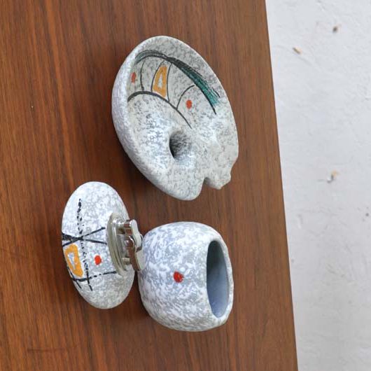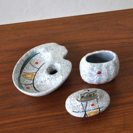 Asbak, sigarettenhouder en aansteker, jaren 50, aardewerk. Gaaf.